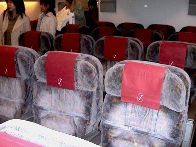 今回搭乗した飛行機は元JASの777-200です。この飛行機、機内の座席がスーパーシート、レインボーシート、普通席の3種類あるのです。クラスJで元スーパーシートの座席を指定出来れば広くて乗り得なのです。ちなみに各席にモニターもついてます。