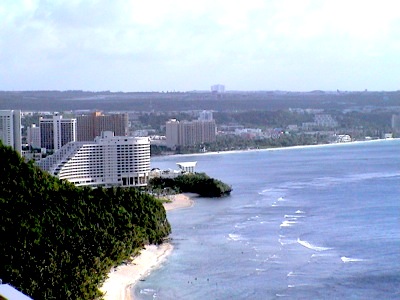先ほど離陸したグアム国際空港を眼下に望みます。