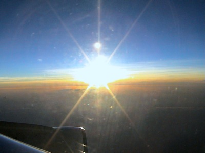 機内から眺める夕焼け。思い出をいっぱい持ち帰り。